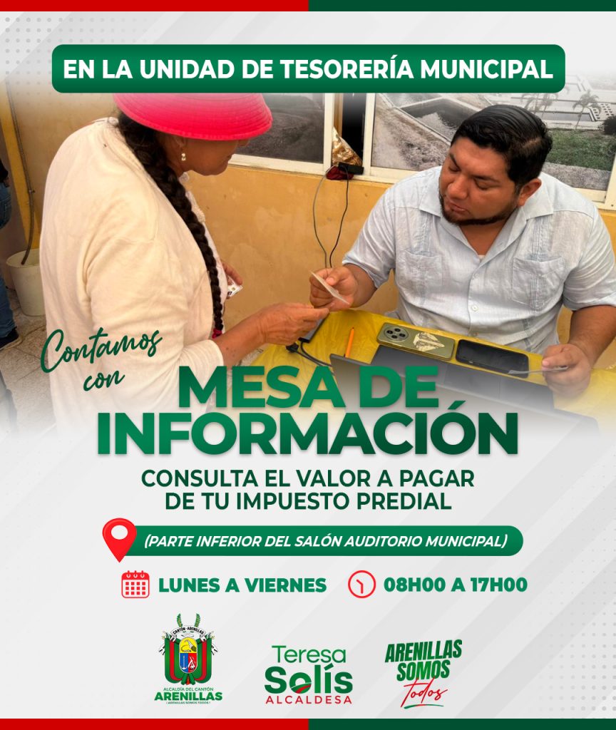 La Municipalidad de Arenillas exhorta a la ciudadanía a aprovechar los descuentos por pronto pago en los impuestos prediales urbanos y rurales correspondientes al año 2026. Del 1 al 15...