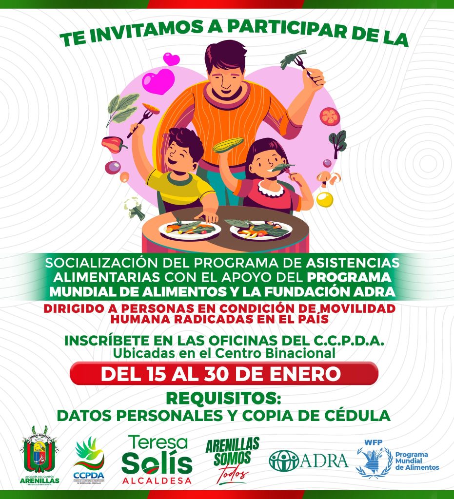 El Concejo Cantonal de Protección de Derechos invita a personas en situación de movilidad humana, a la socialización del Programa de Asistencia Alimentaria, que se ejecutará con el apoyo del...